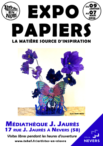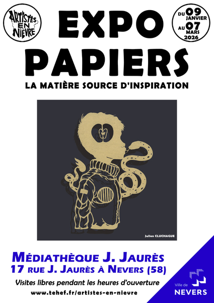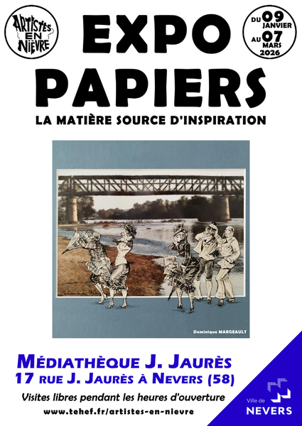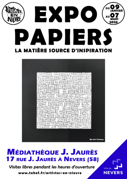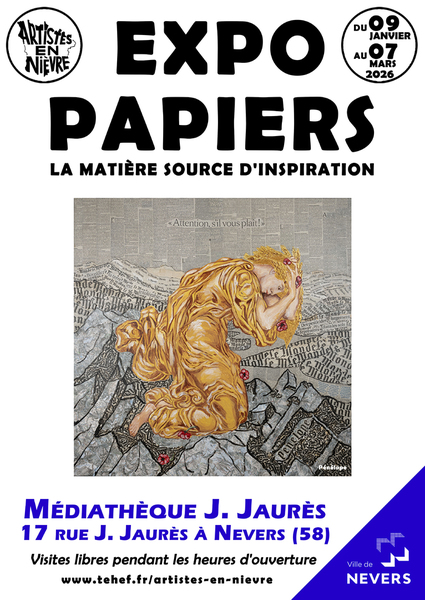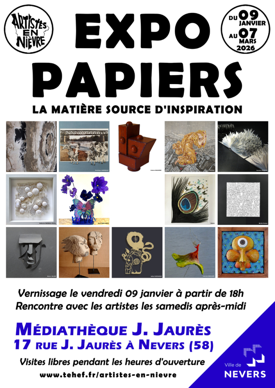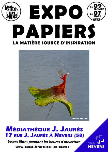 L'association Artistes en Nièvre organise une exposition collective thématique du 09/01/2026 au 07/03/2026 dans la salle d'exposition de la médiathèque Jean Jaurès de