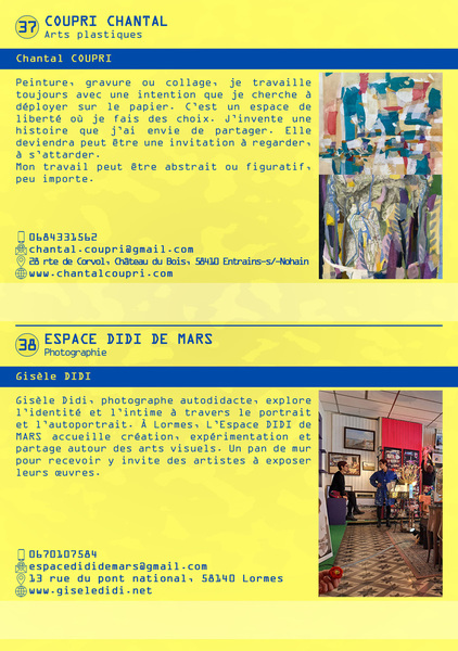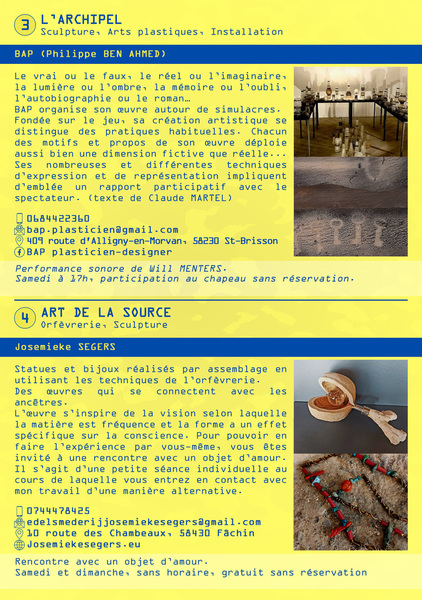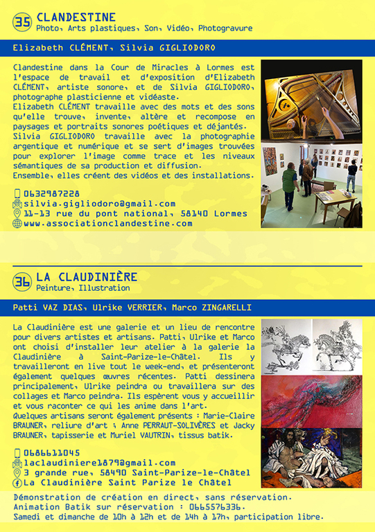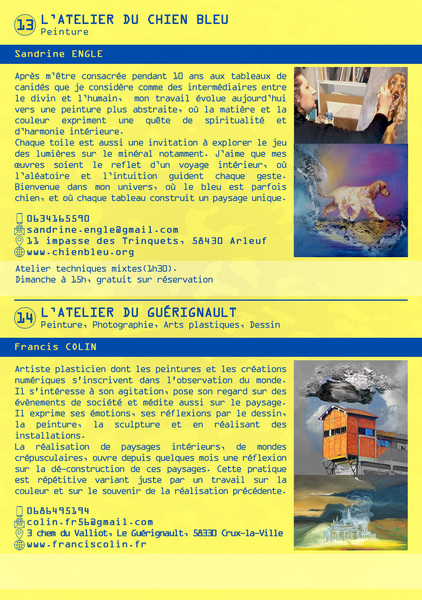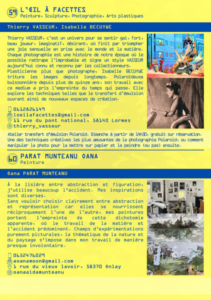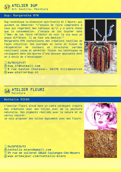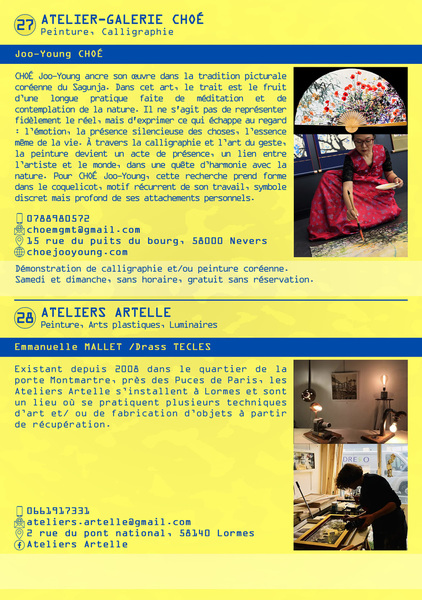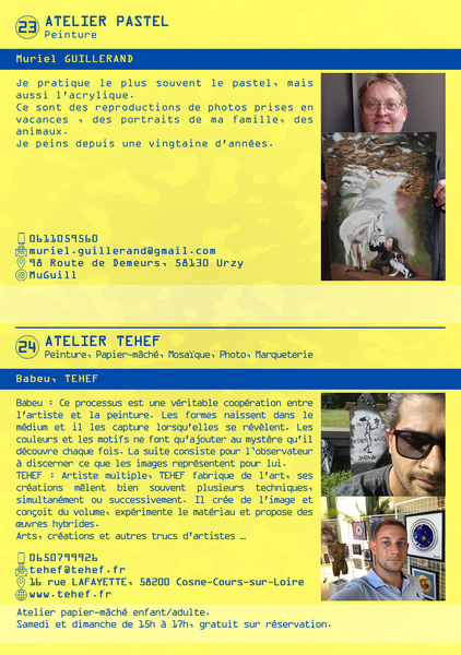Retrouvez la présentation des ateliers, des artistes et leurs animation un peu plus en dessous.