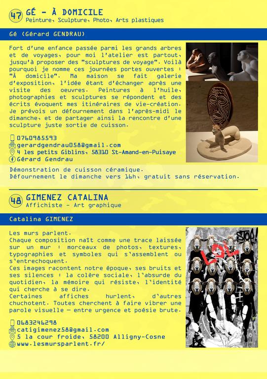 Ateliers ouverts à la visite samedi 25 et dimanche 26 octobre de 10h à 18h.